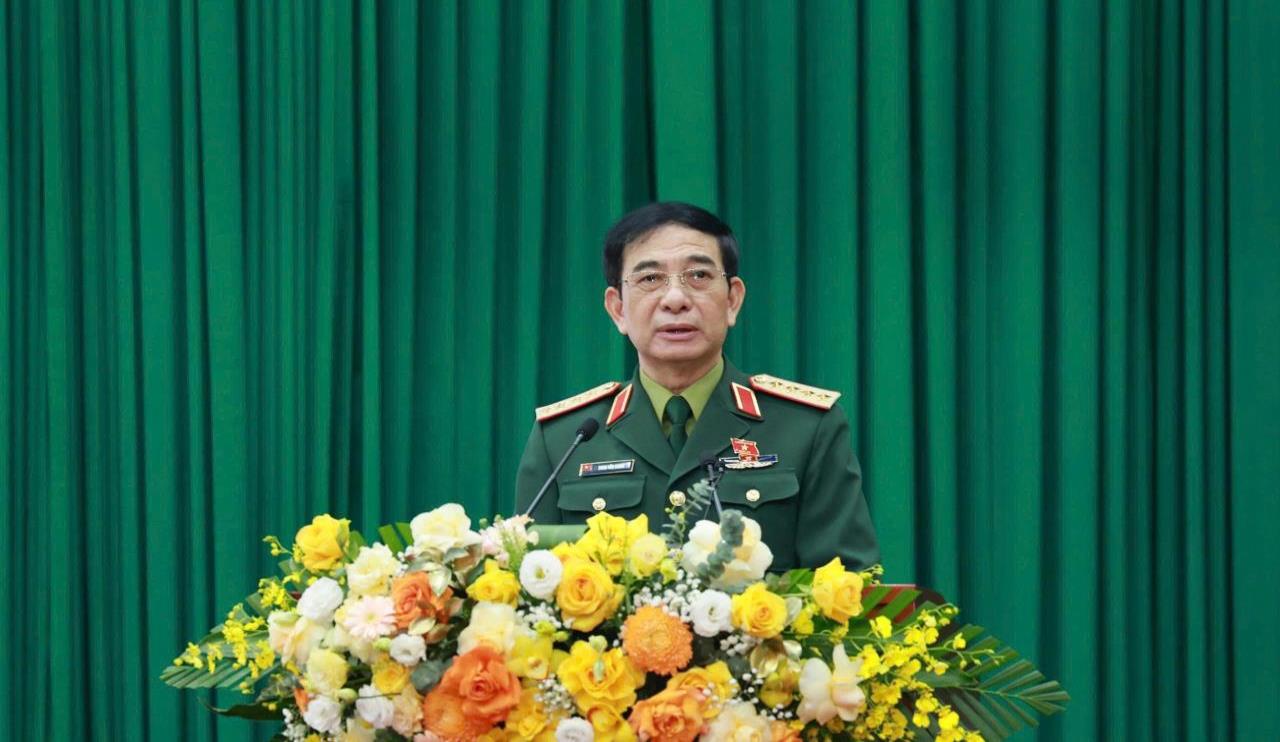 Đại tướng Phan Văn Giang, Ủy viên Bộ Chính trị, Phó Bí thư Quân ủy Trung ương, Bộ trưởng Bộ Quốc phòng phát biểu tại Hội nghị tiếp xúc cử tri sau Kỳ họp thứ 10, Quốc hội Khoá XV