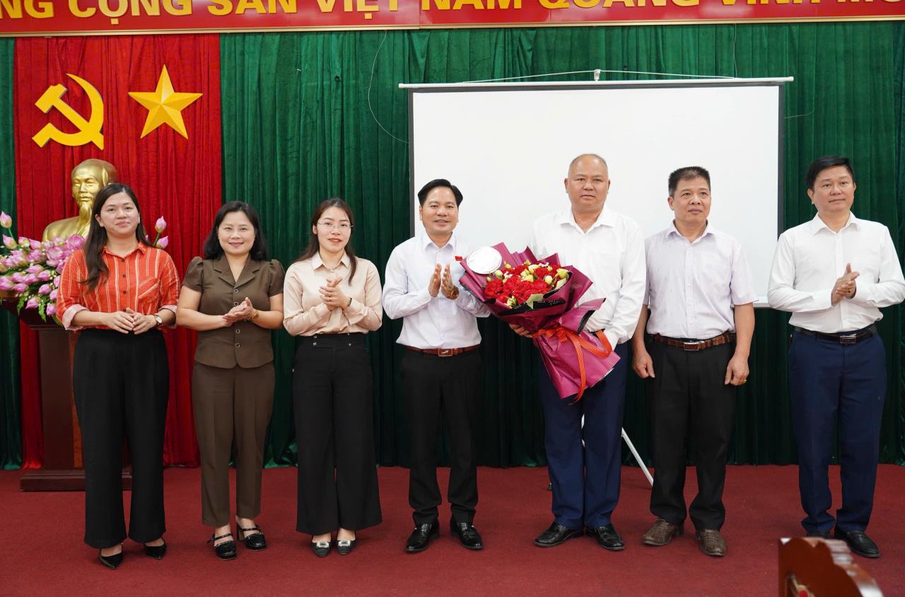 Các đại biểu tặng hoa chúc mừng các đồng chí giữ chức Trưởng đoàn, Phó Trưởng đoàn khu vực 7