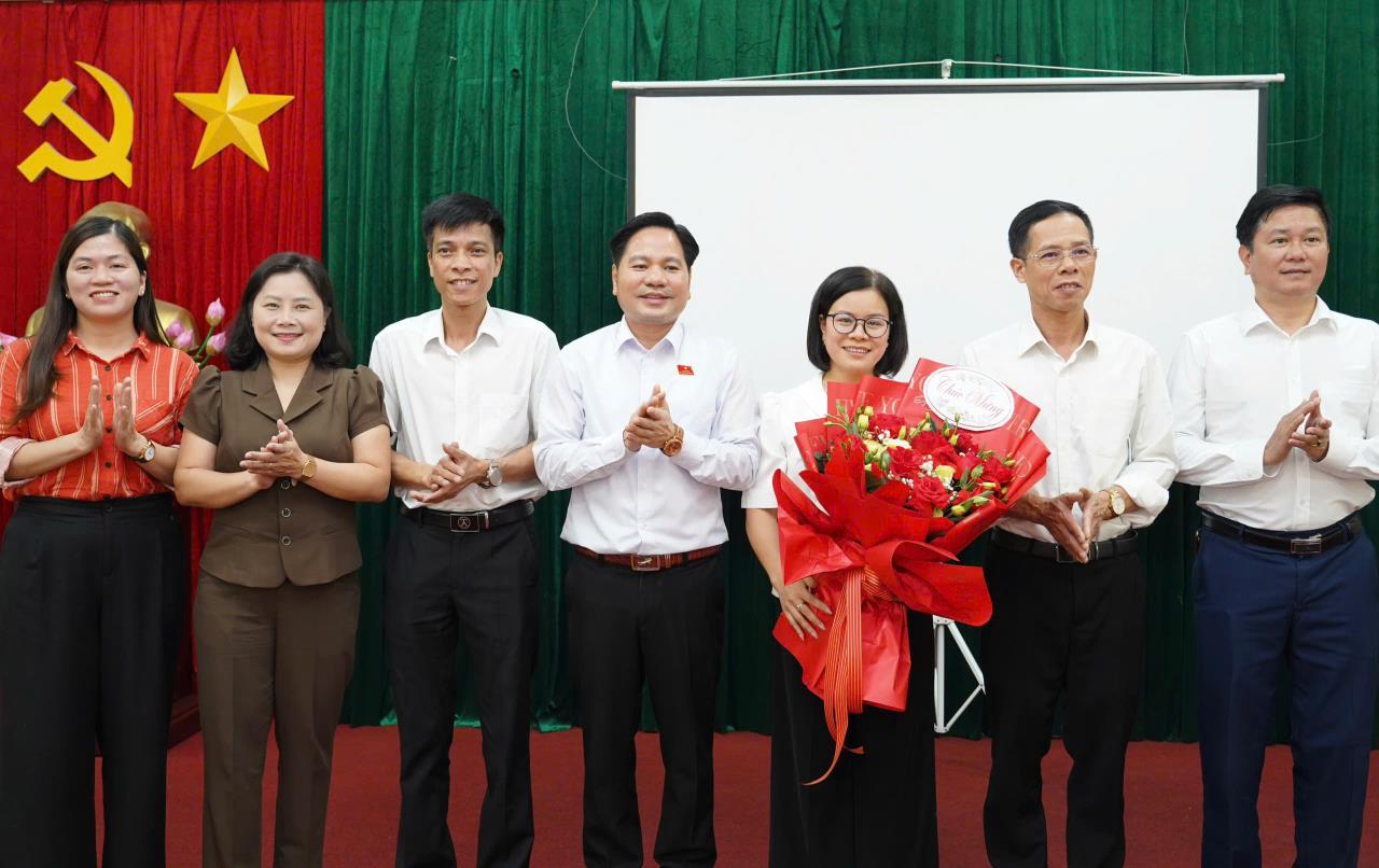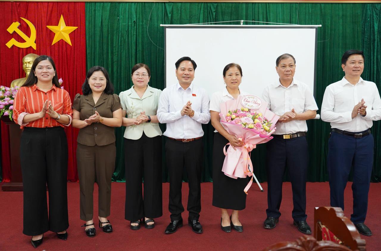 Các đại biểu tặng hoa chúc mừng các đồng chí giữ chức Trưởng đoàn, Phó Trưởng đoàn khu vực 6