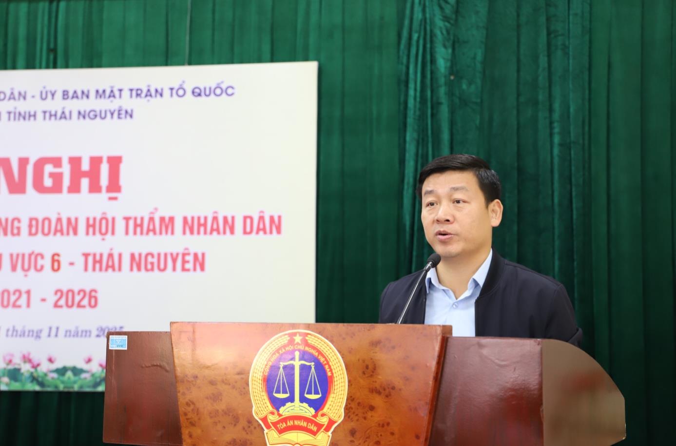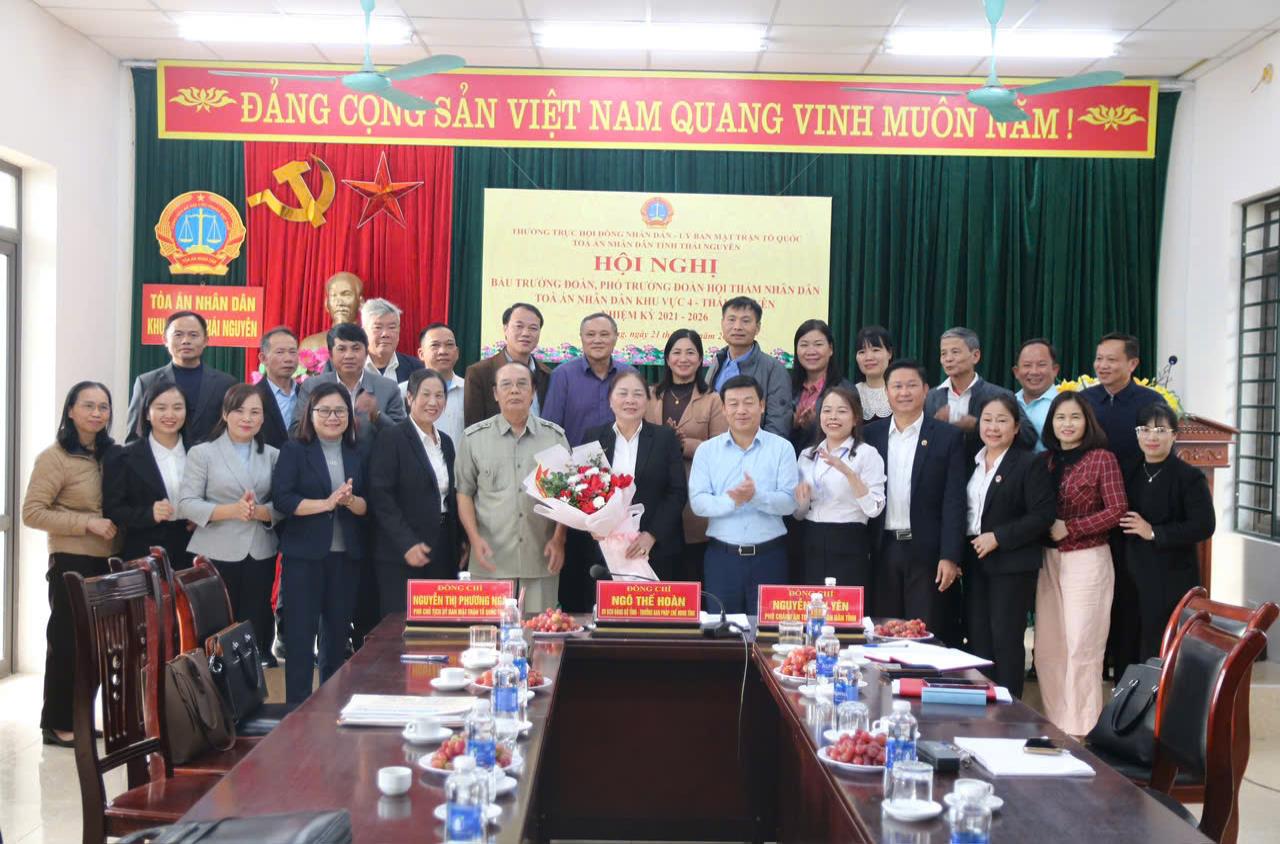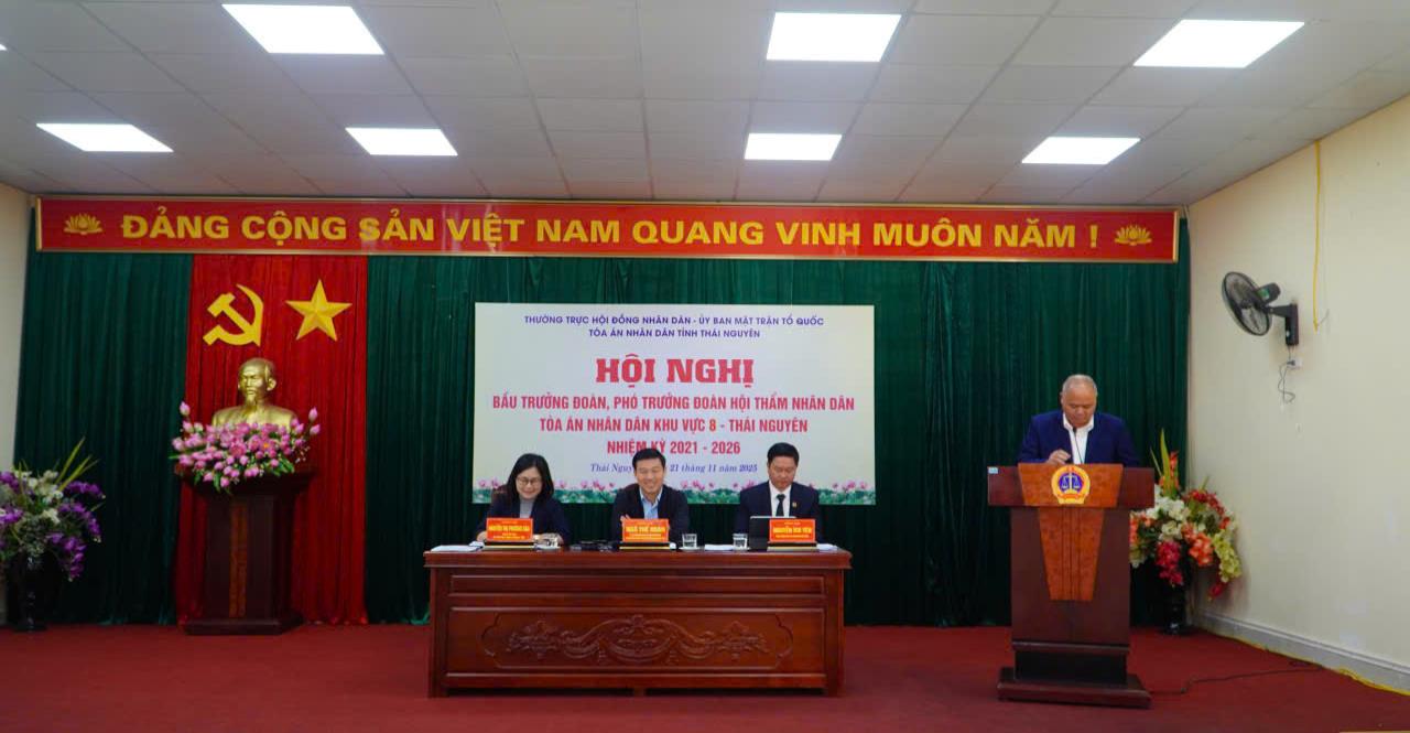 Ngày 21/11/2025, Thường trực Hội đồng nhân dân tỉnh Thái Nguyên đã chủ trì, phối hợp với Ban Thường trực Ủy ban Mặt trận Tổ quốc tỉnh và Tòa án nhân dân tỉnh tổ chức hội nghị để bầu Trưởng đoàn, Phó Trưởng đoàn Hội thẩm nhân dân Tòa án nhân dân các khu vực 4, 6, 7, 8 và 9 tỉnh Thái Nguyên, nhiệm kỳ 2021 - 2026. Đồng chí Ngô Thế Hoàn, Ủy viên Ban Chấp hành Đảng bộ tỉnh, Ủy viên Thường trực, Trưởng Ban Pháp chế HĐND tỉnh; đồng chí Nguyễn Thị Phương Nga, Phó Chủ tịch Ủy ban Mặt trận Tổ quốc tỉnh; đồng chí Nguyễn Ích Yên, Phó Chánh án Tòa án nhân dân tỉnh chủ trì hội nghị. Dự hội nghị có các đồng chí Lãnh đạo Văn phòng Đoàn ĐBQH và HĐND tỉnh, Lãnh đạo Tòa án nhân dân các khu vực 4, 6, 7, 8 và 9 cùng sự có mặt của các vị đại biểu Hội thẩm Toàn án nhân dân các khu vực.
