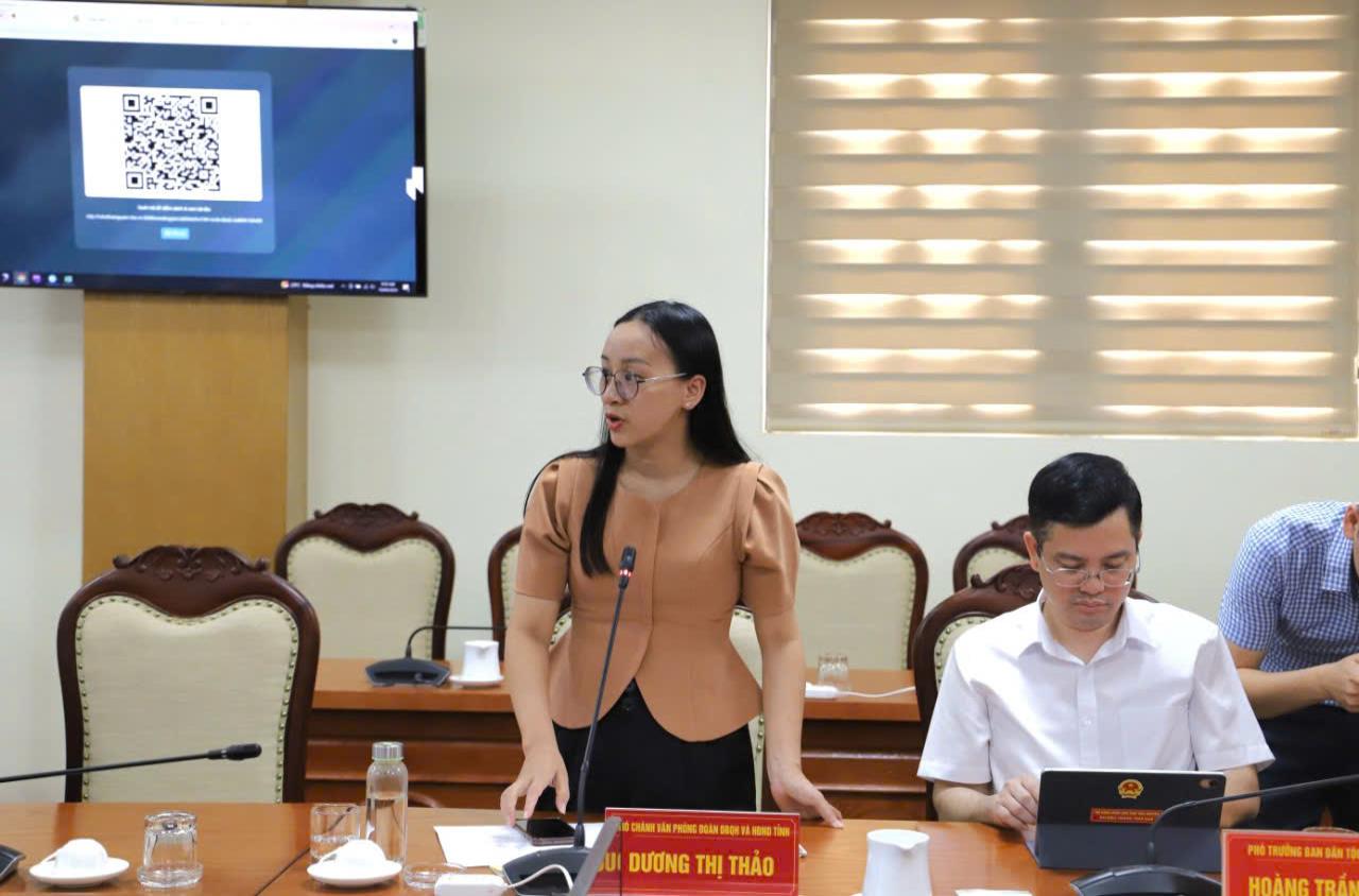 Đồng chí Dương Thị Thảo, Phó Chánh Văn phòng tham gia vận hành thực tế và phát biểu ý kiến tại hội nghị