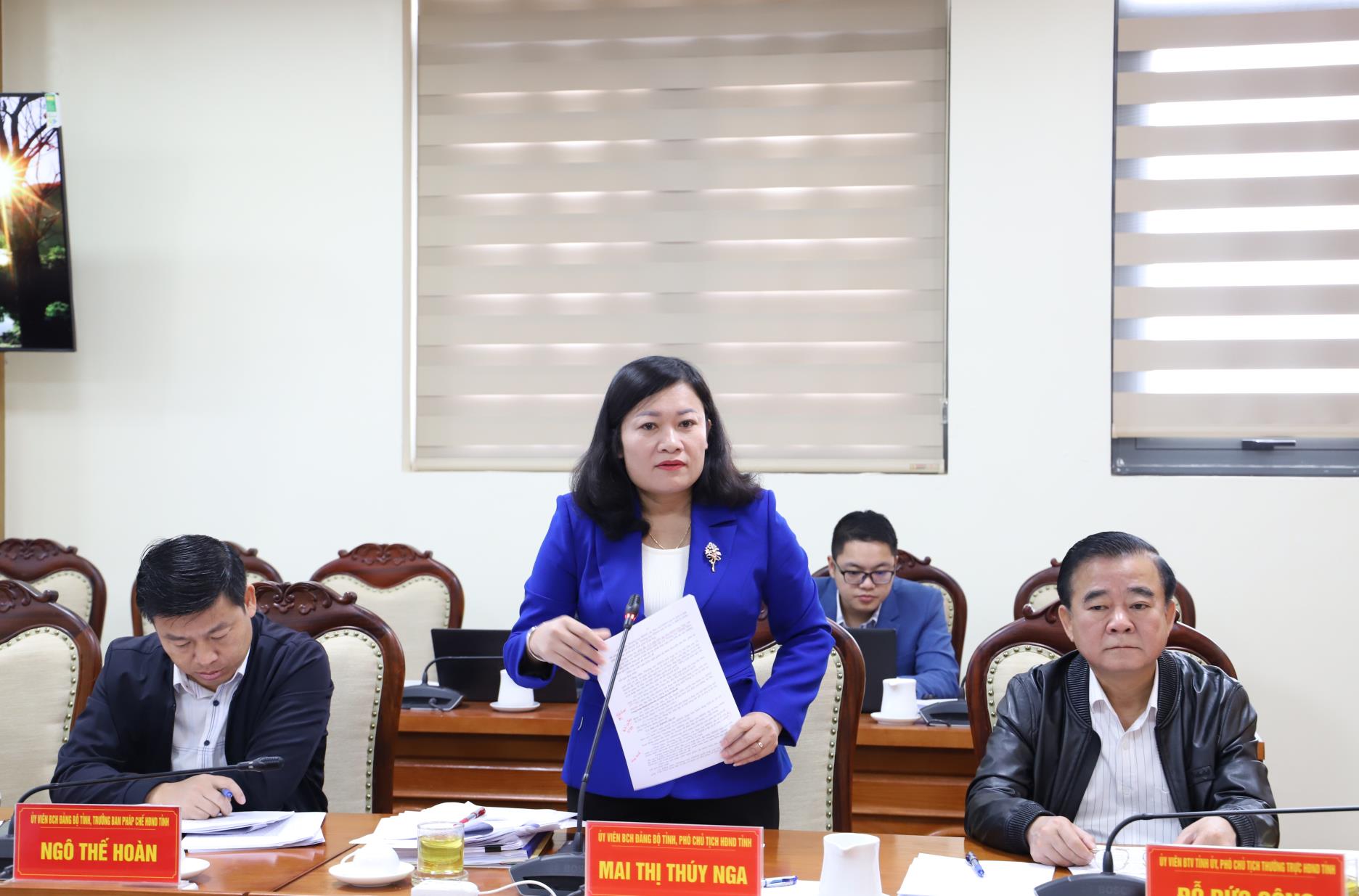 Đồng chí Mai Thị Thúy Nga, Tỉnh ủy viên, Phó Chủ tịch HĐND tỉnh, Phó Trưởng Ban Chỉ đạo Đề án phát biểu ý kiến tại Hội nghị